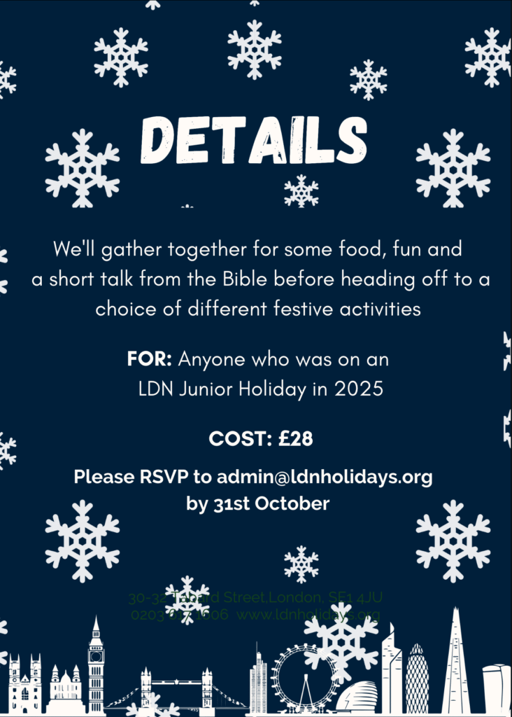 The Junior Reunion is for anyone who attended an LDN Junior Holiday this summer. It’s a great chance to re-live memories from the summer and to catch up with friends – it’s always great to see everyone again!